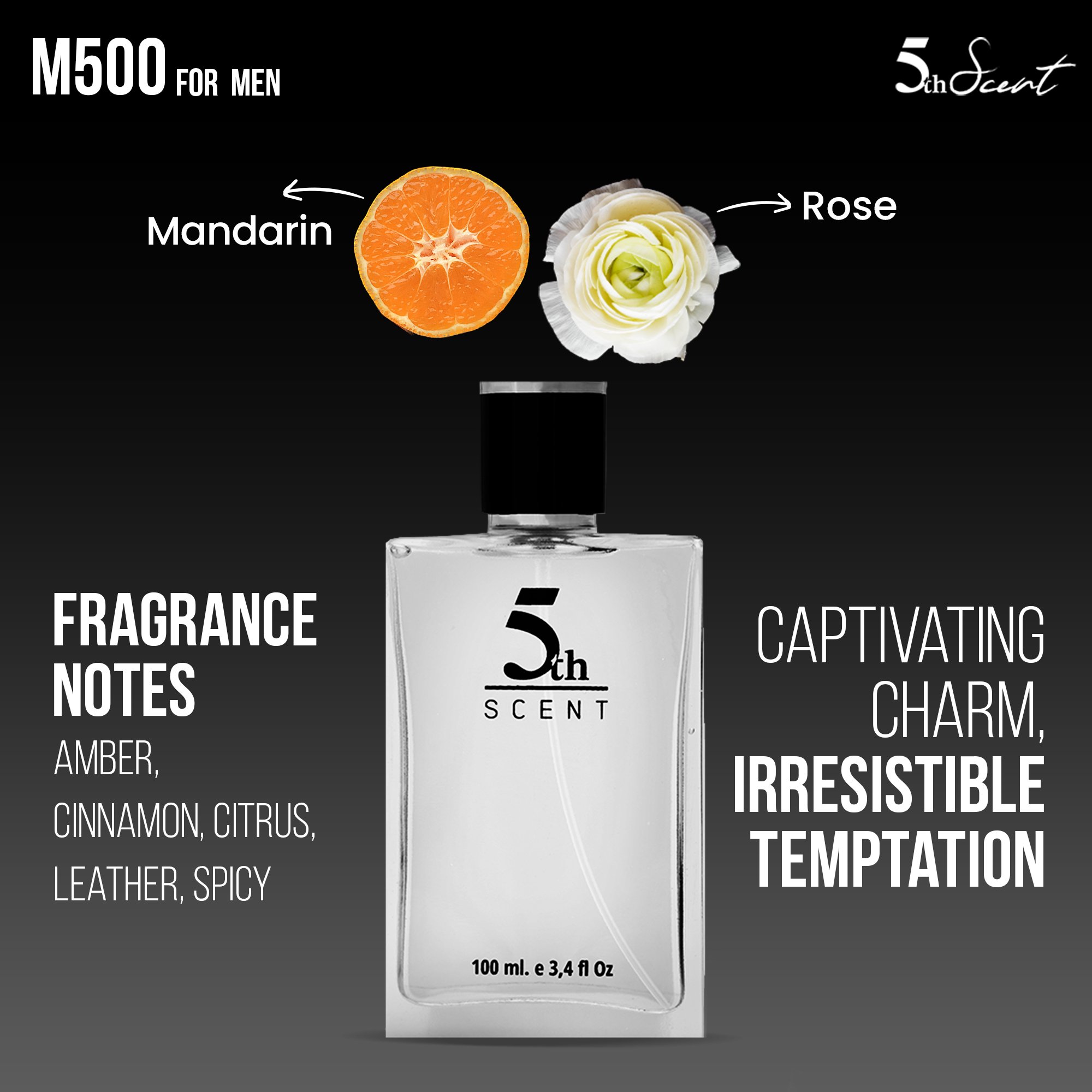 Combining notes of amber, cinnamon, citrus, leather, warm spicy, and woody, M500 gives off charm and desire vibes.| GENDER |