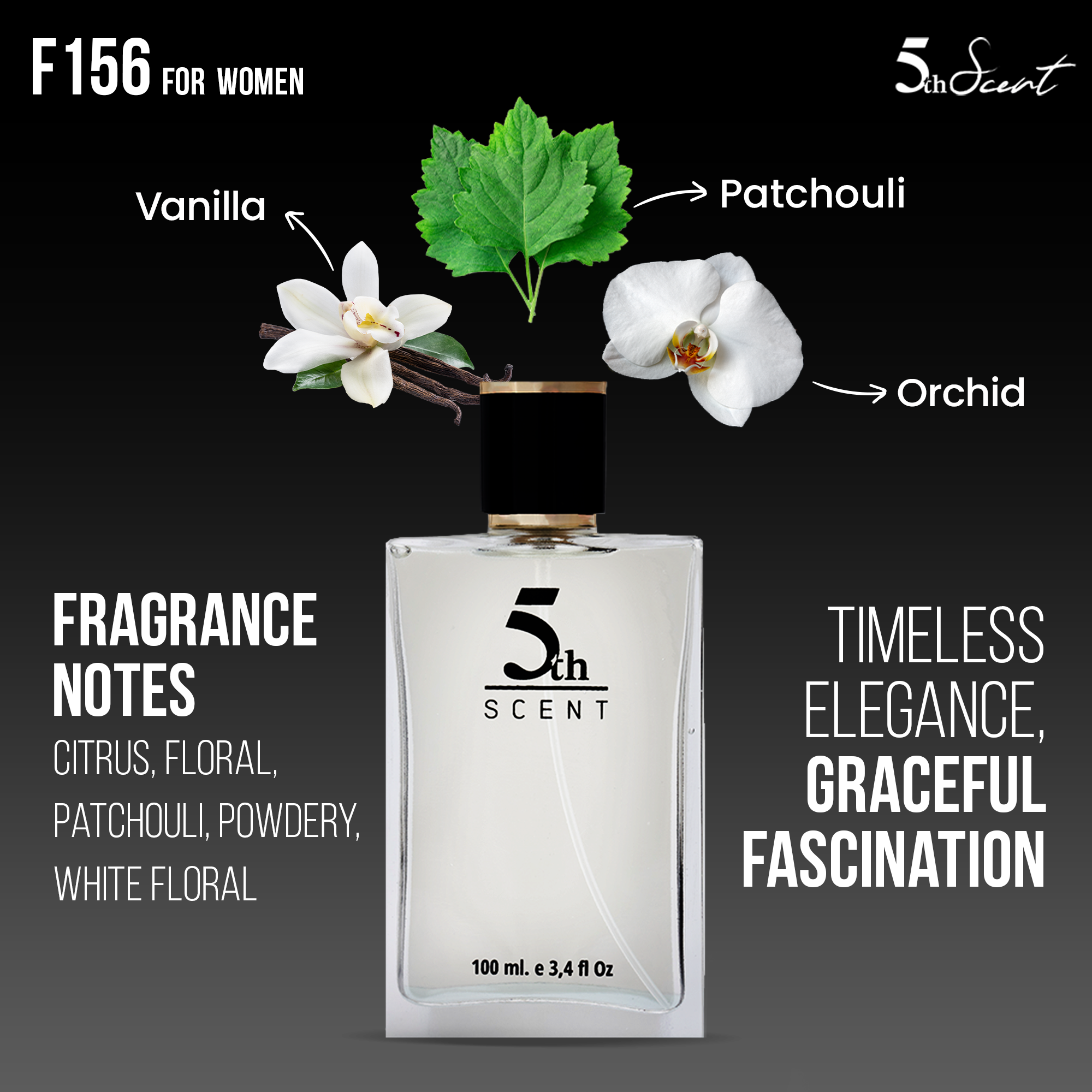 Combining notes of Citrus, Floral, Patchouli, Powdery, White Floral, Woody F156 gives off elegant and charming vibes.